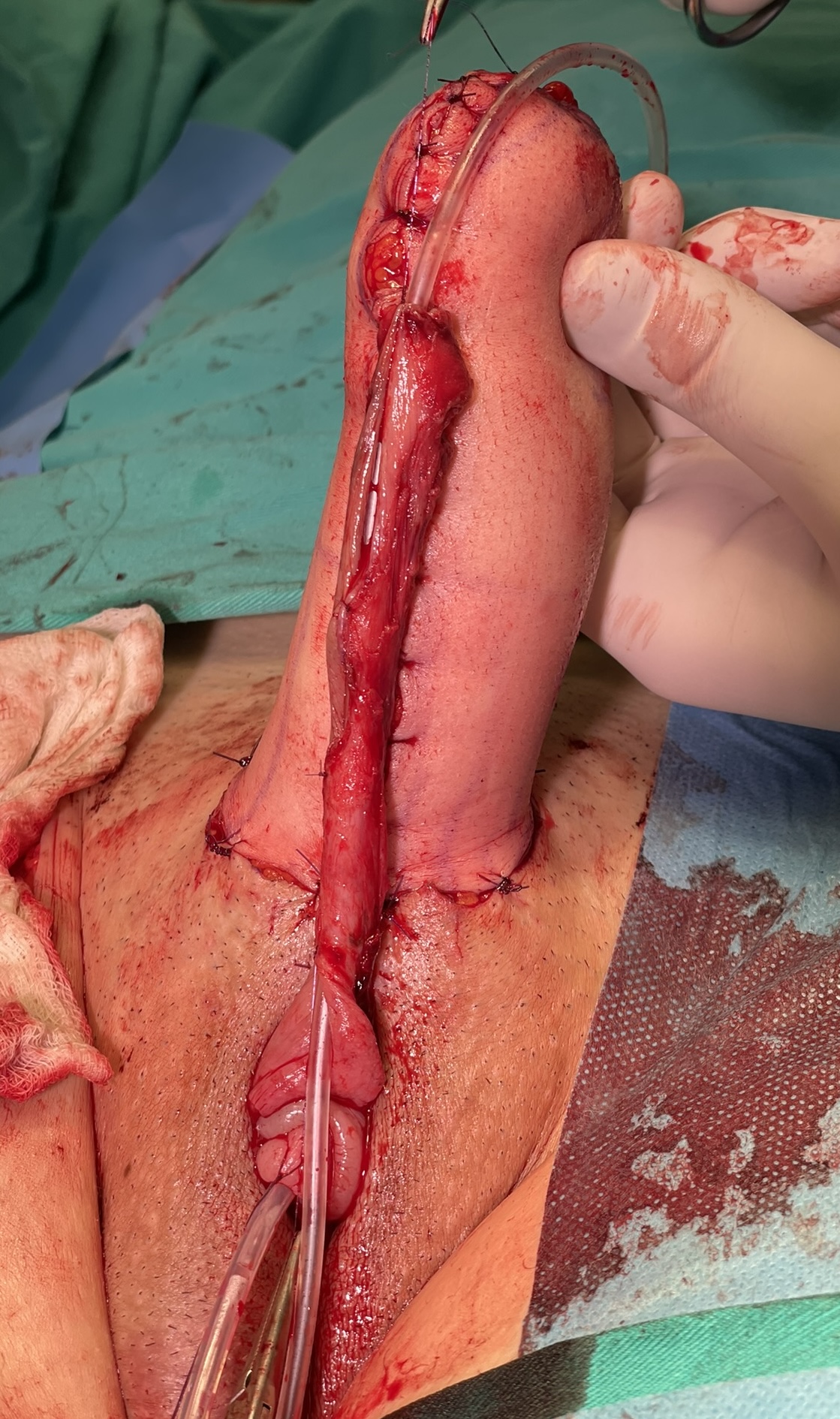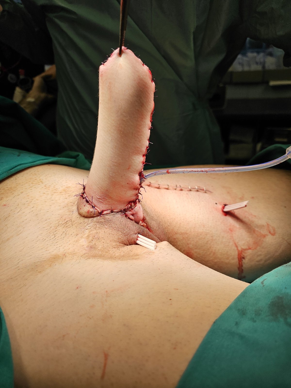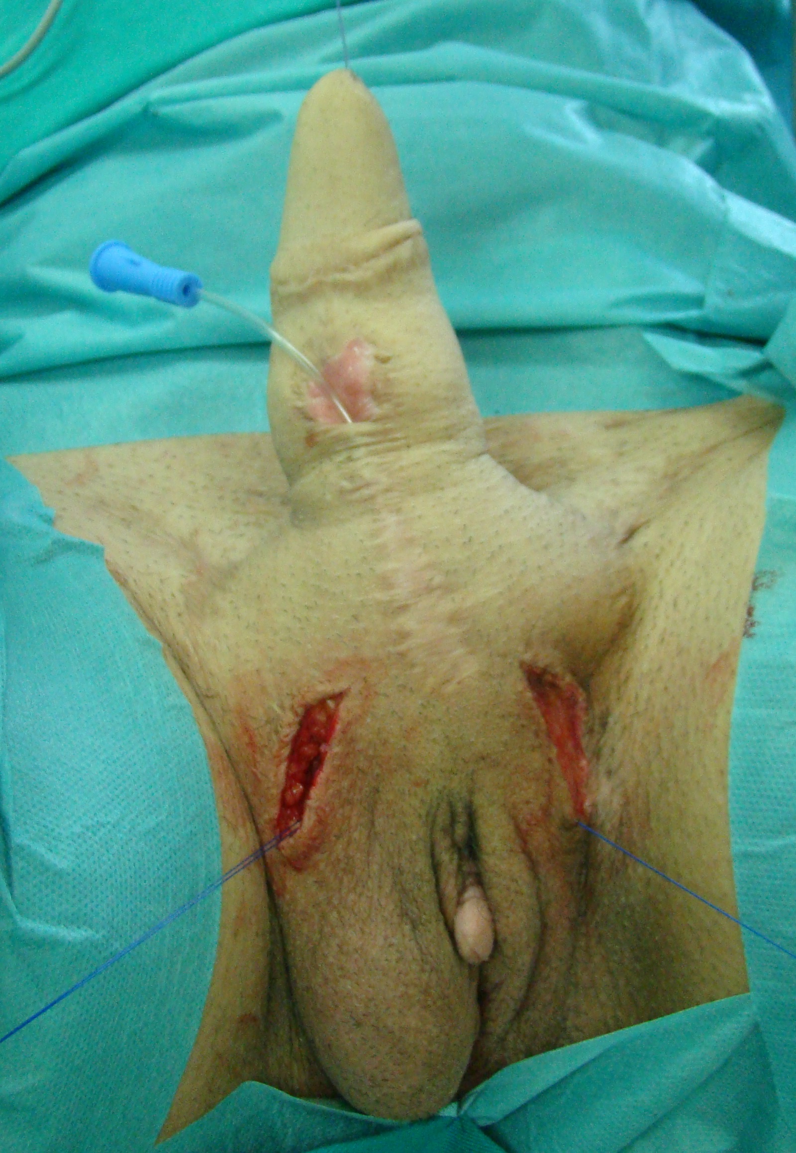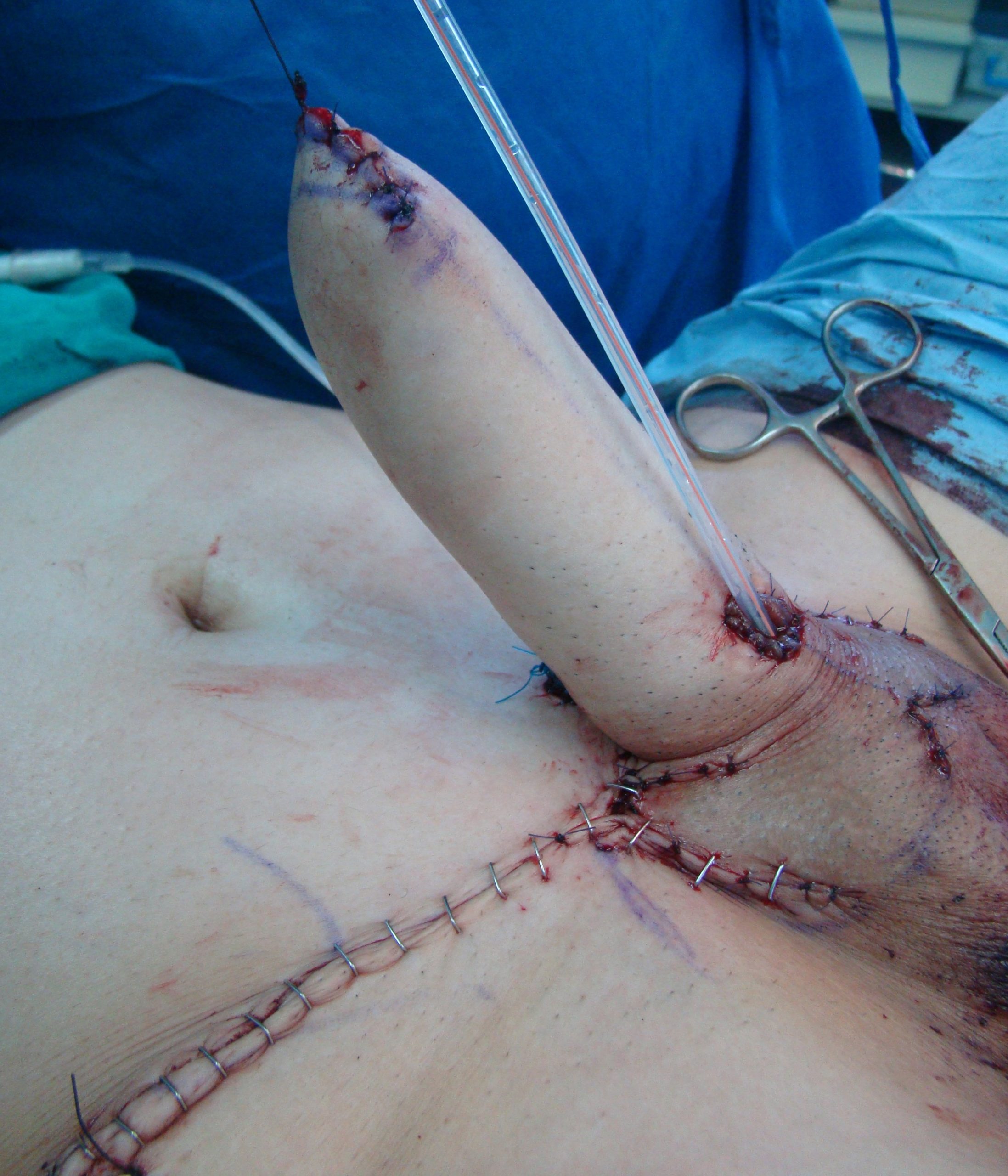 Lateral view. Urethra is lengthened and new opening is located in the proximal part of the neophallus