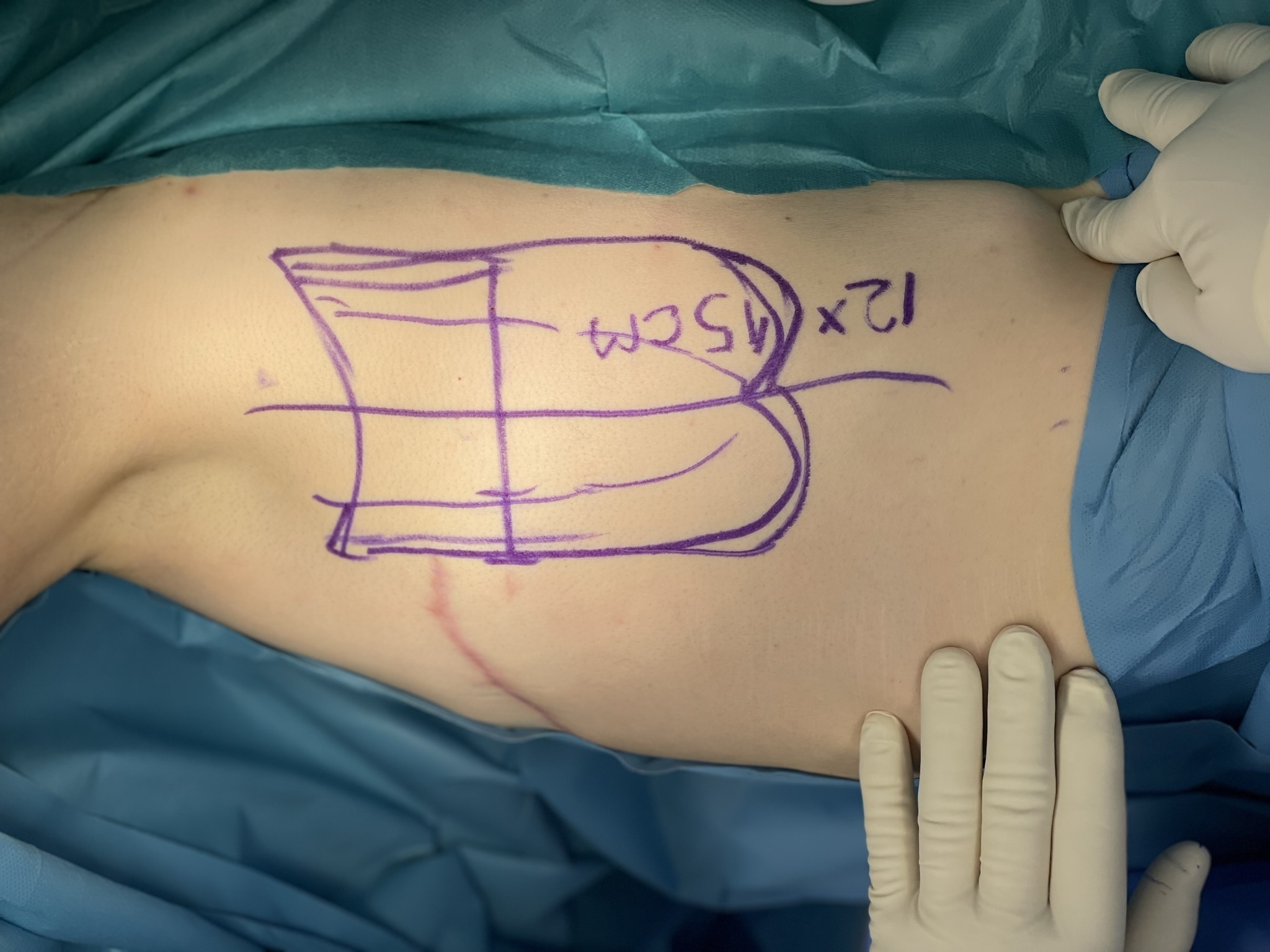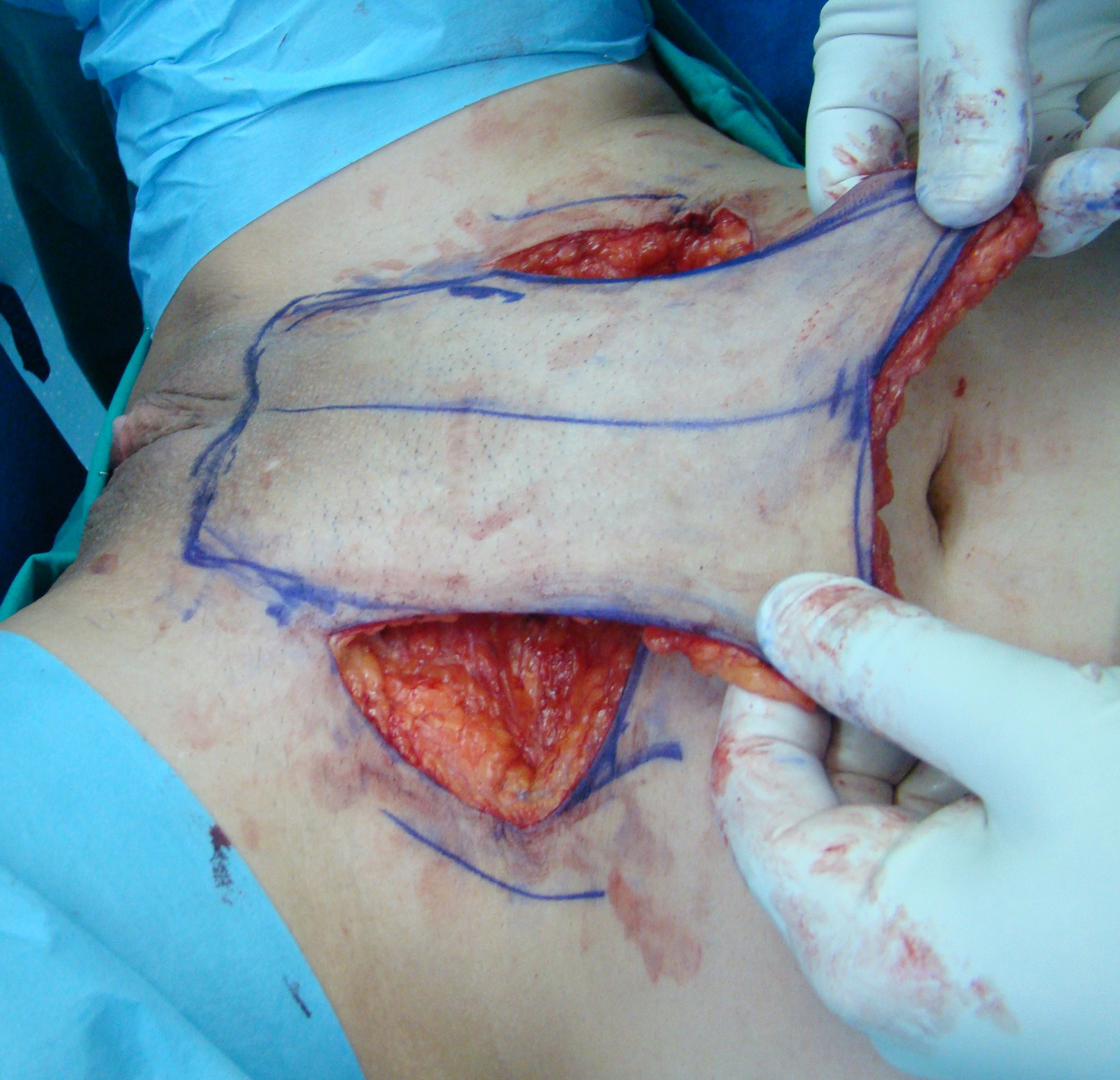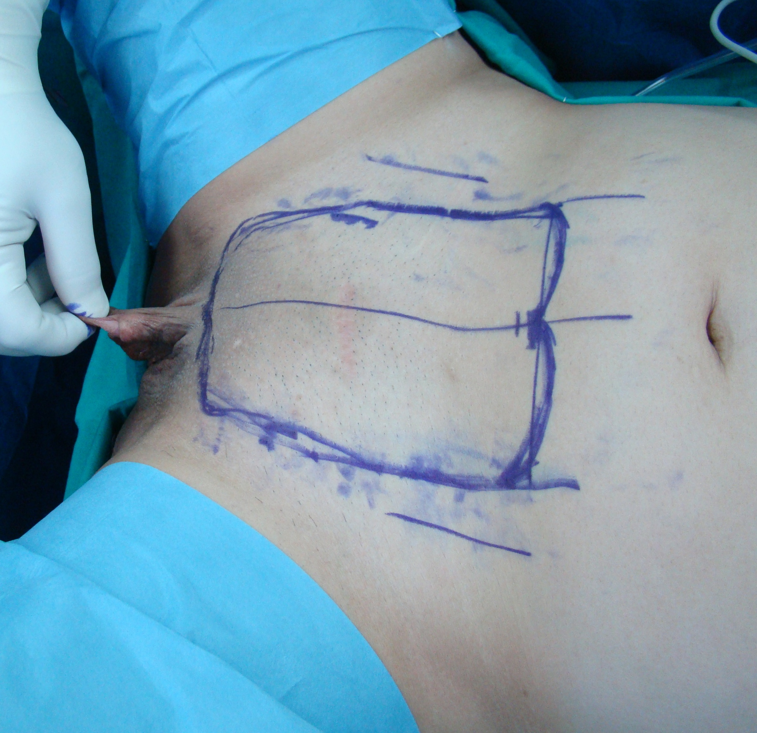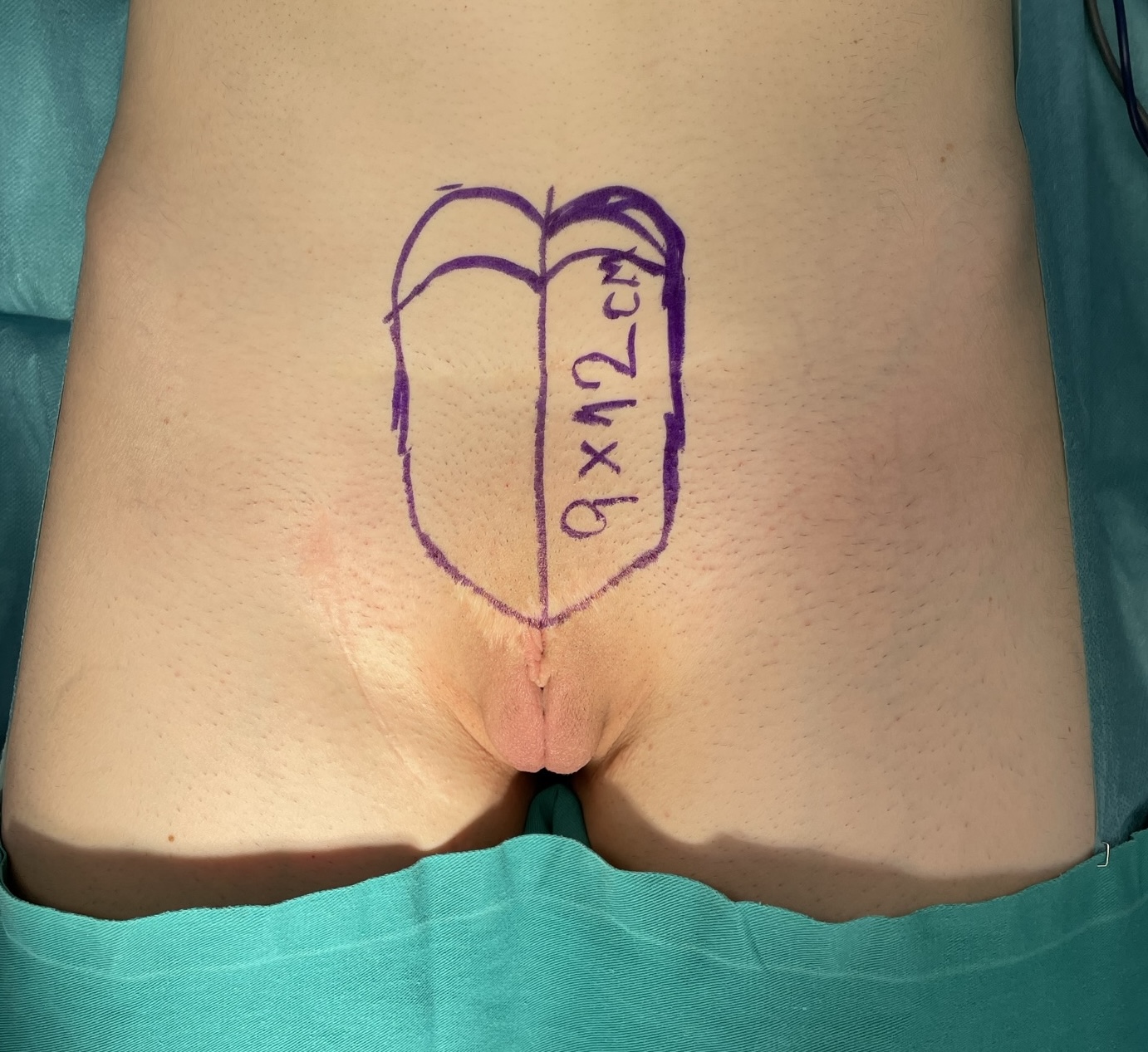 Preoperative appearance. A 9x12cm suprapubic flap is designed.
