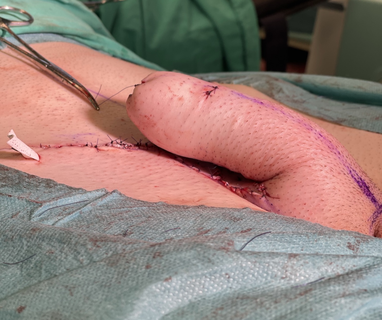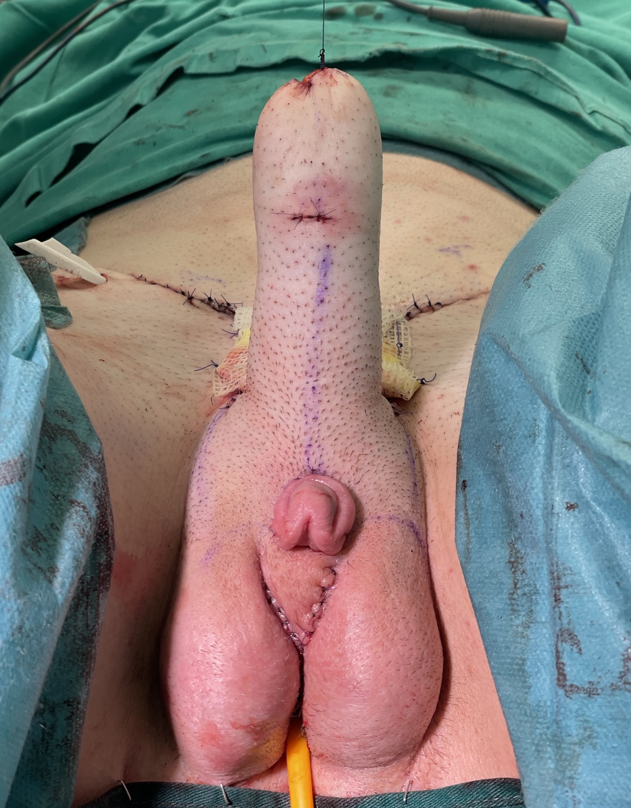 Result after surgery. Good shape and dimensions of the neophallus are achieved.