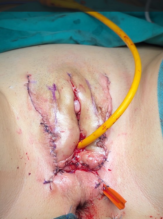 2. Re-do sigmoid vaginoplasty is done. Vulvoplasty and urethroplasty are performed