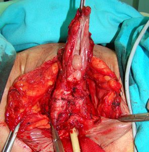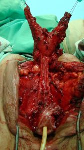 3. Glans with cavernosal bodies are completely removed. Reconstruction of vulva is performed.